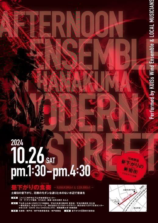 花隈モダン通り・メルカロード宇治川における演奏会/スマホARを活用した観光実験/Kobe INK物語を使った絵画実演
